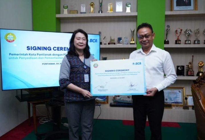 PONTIANAK Poskota Online– Wali Kota Pontianak, Edi Rusdi Kamtono, menandatangani nota kesepahaman (MoU) dengan PT Bank Central Asia Tbk (BCA) di Kantor Wali Kota Pontianak, Jumat (4/7/2025). Kerja sama ini bertujuan meningkatkan akses keuangan daerah, khususnya dalam memudahkan masyarakat melakukan pembayaran pajak secara nontunai (cashless).