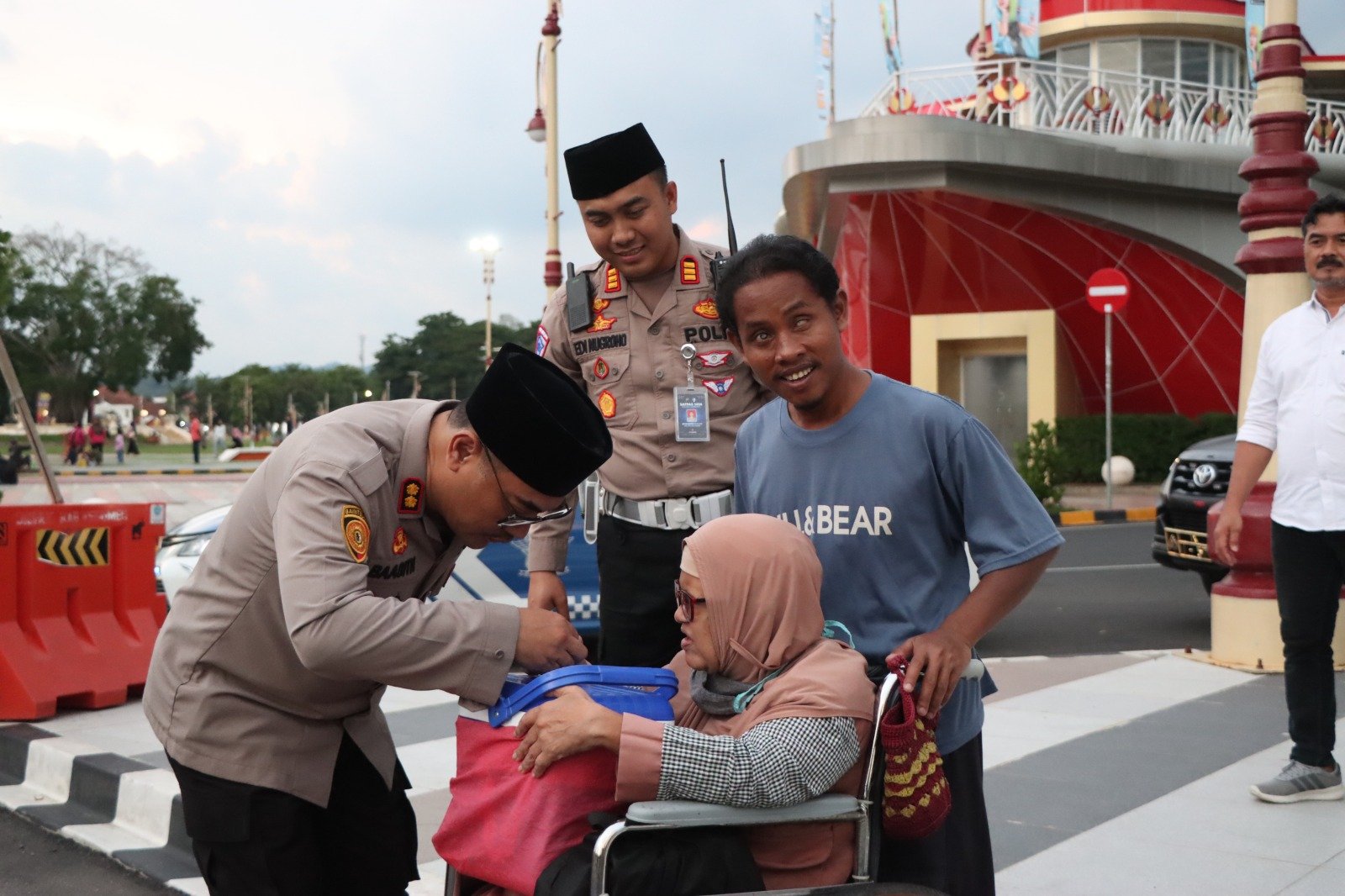 Namun, selain pembagian nasi kotak, ada momen menarik yang terjadi dalam kegiatan tersebut. AKBP Eka Baasith Syamsuri tampak menghampiri seorang difabel yang sedang menjajakan es lilin di dekat Kapal Mendoan Alun-alun Pancasila Kebumen.