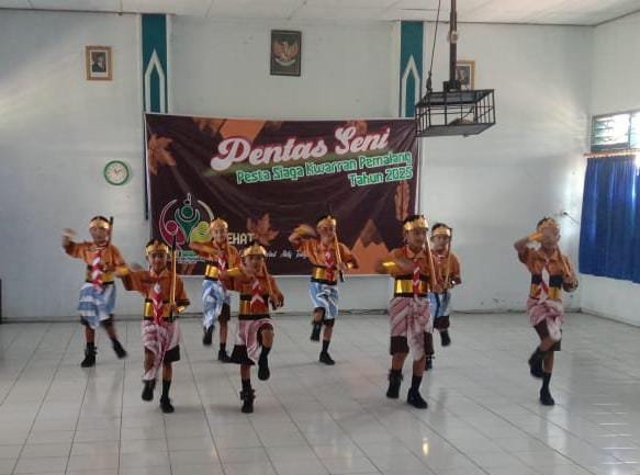 Tampak berlangsungnya prosesi upacara Pesta Siaga Tahun 2025 setelah selesai kemudian awak media mewawancarai Ulin Nuha selaku Ketua Panitia dan Daryanto .S.Pd.SD. Sekretaris Panitia Pesta Siaga Tahun 2025