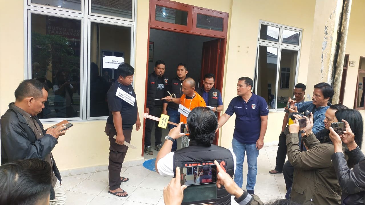 Unit Jatanras (Tindak Pidana Khusus) Sat Reskrim Polres Simalungun menggelar kegiatan rekonstruksi, di halaman Kantor Sat Reskrim Polres Simalungun, Jalan Jhon Horailam Saragih, Pematang Raya, Kecamatan Raya, Kabupaten Simalungun, Sumut, Selasa (2/12/2025) sekira pukul 13.00 WIB.