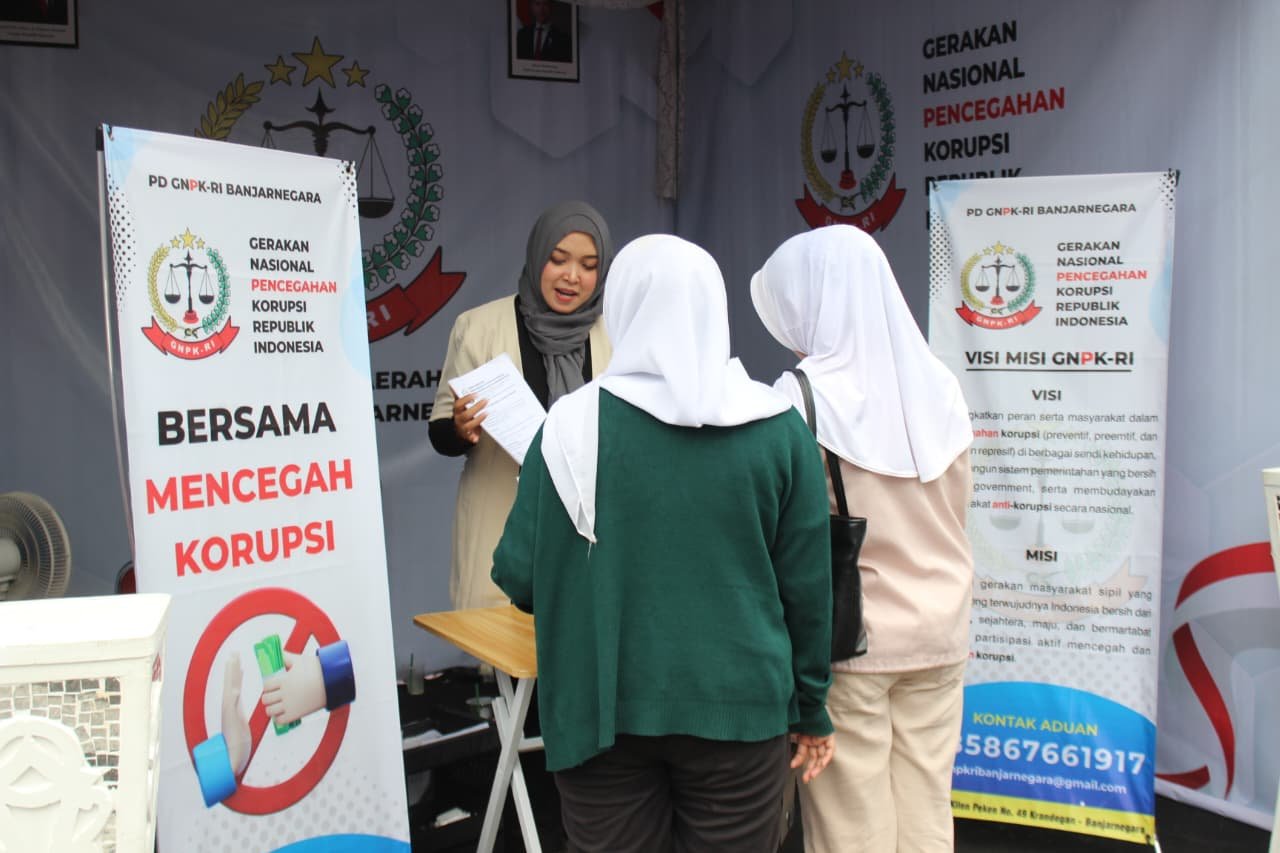 Sebagai bagian dari upaya pencegahan, GNPK-RI Banjarnegara juga membagikan stiker kontak aduan, materi edukasi antikorupsi, serta informasi visi dan misi organisasi kepada pengunjung Pasar Rakyat.
