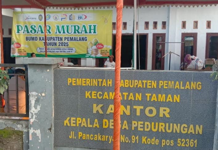Maka dari Pemerintah Kabupaten Pemalang Provinsi Jawa Tengah melaksanakan Pasar Murah Tahun 2025 yang berlokasi di Kantor Pemerintah Desa Pedurungan Kecamatan Taman Kabupaten Pemalang.