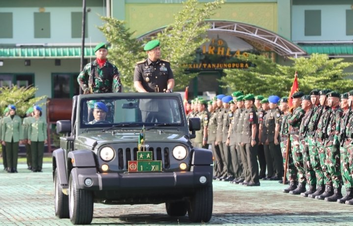 Panglima Kodam XII/Tanjungpura, Mayjen TNI Jamallulael, S.Sos., M.Si., bertindak langsung sebagai inspektur upacara yang diikuti oleh seluruh prajurit dan Aparatur Sipil Negara (ASN) di jajaran Kodam XII/Tpr.