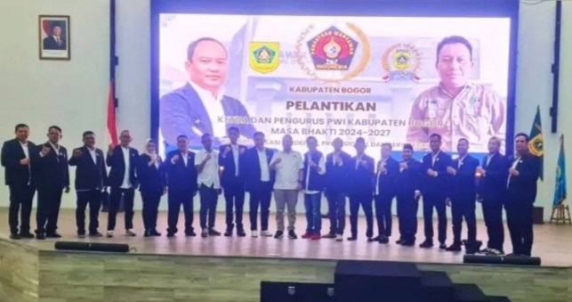 Bogor,Poskota.Online-Ketua dan Pengurus PWI Kabupaten Bogor, Jawa Barat Periode 2024-2027 resmi dilantik. Pelantikan yang dilakukan secara langsung oleh Ketua PWI Jawa Barat Hilman Hidayat, S.Sos. M.Si tersebut berlangsung di Auditorium Setda Pemda Kabupaten Bogor pada, Selasa 21 Januari 2025