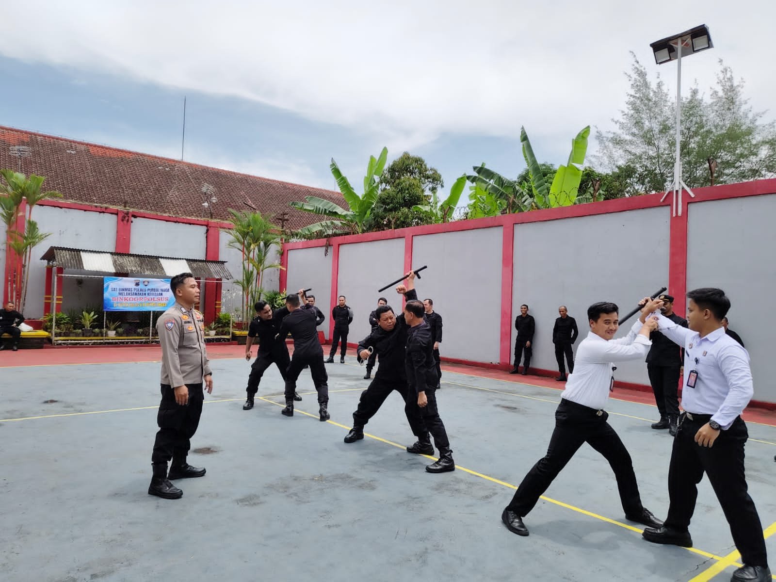 Disampaikan bahwa, selain pemberian materi, diberikan juga pelatihan bela diri dan penggunaan tongkat. Praktek ini bertujuan untuk meningkatkan keterampilan Polsuspas dalam menghadapi situasi yang memerlukan tindakan dan penggunaan peralatan dalam tugas.
