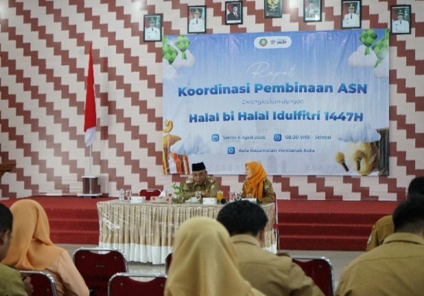 “Dan satu hal yang tidak kalah penting adalah bekerja secara tim atau teamwork karena keberhasilan penyelenggaraan pemerintahan tidak bisa dicapai secara individu, melainkan melalui kolaborasi yang solid antar perangkat daerah,” ujarnya saat memberikan arahan kepada ASN se-Kecamatan Pontianak Kota pada apel pagi dan halal bihalal di halaman Kantor Camat Pontianak Kota, Senin (6/4/2026).