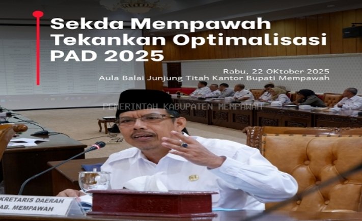 MEMPAWAH Poskota Online– Sekretaris Daerah Kabupaten Mempawah, Ismail, memimpin Rapat Evaluasi Pendapatan Asli Daerah (PAD) Tahun Anggaran 2025, yang digelar di Balai Junjung Titah, Kantor Bupati Mempawah, Rabu (23/10/2025).