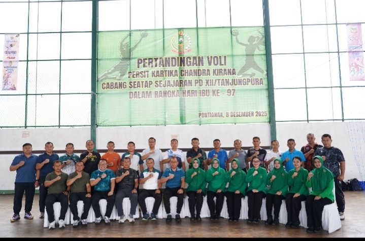 Kubu Raya Poskota Online– Suasana ceria dan kompetitif mewarnai Sports Center Markas Kodam XII/Tanjungpura pada hari ini Senin (8/12/2025). Pangdam XII/Tanjungpura, Mayjen TNI Jamallulael, S.Sos., M.Si., secara resmi membuka turnamen bola voli yang diselenggarakan oleh Persit Kartika Chandra Kirana Pengurus Daerah XII/Tanjungpura dalam rangka menyambut Hari Ibu Nasional 22 Desember.