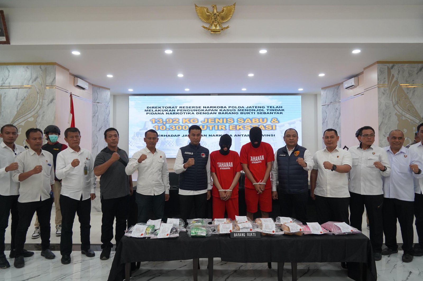 Kota Semarang, poskota.online – Direktorat Reserse Narkoba Polda Jawa Tengah berhasil membongkar kasus penyelundupan Narkotika dengan barang bukti 13,92 kg sabu dan 10.300 butir ekstasi. Dua tersangka, RT (39) dan MIA (31), yang diduga sebagai kurir Narkotika, berhasil diamankan beserta barang bukti yang disembunyikan di dalam interior mobil Daihatsu Sigra.