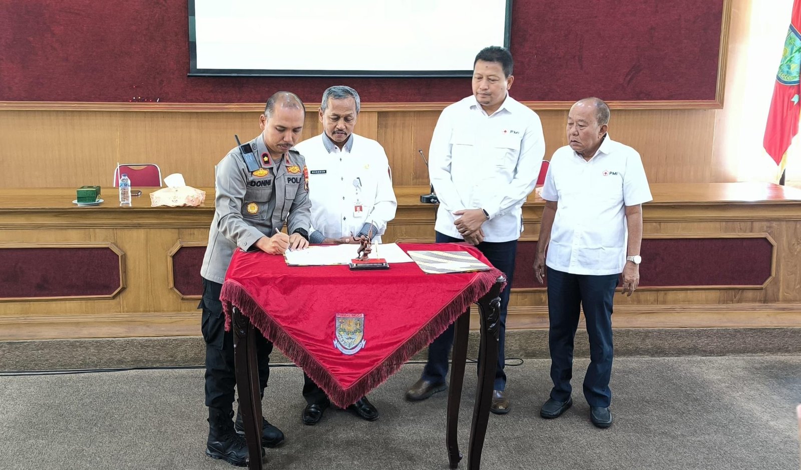Dalam kesempatan itu, Wakapolres yang mewakili Kapolres Purbalingga menandatangani berita acara dan menyerahkan hasil bulan dana PMI kepada Asisten Ekonomi dan Pembangunan Sekda PurbaIingga, Mukodam yang mewakili Bupati Purbalingga.