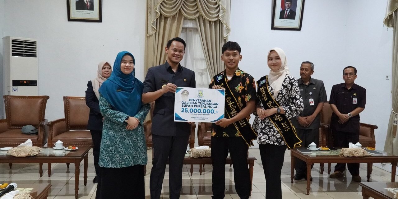 Poskota.online, Purbalingga – Bupati Fahmi menyerahkan seluruh gaji dan tunjangan bulan April 2025 secara simbolis kepada 20 finalis Kakang Mbekayu Duta Wisata Purbalingga 2025, di Rumah Dinas Bupati Senin (19/05/2025).