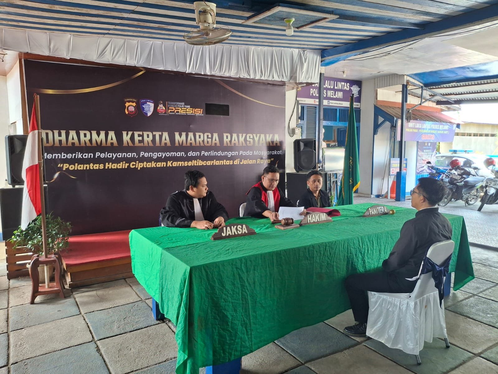 “Pukul 10.30 WIB bertempat di Satpas Lantas Polres Melawi telah dilakukan sidang tilang, Hakim Sastra Lumbantoruan, S.H., M.H, Jaksa Guswandi, S.H, dan Panitera sidang Fahri Sundah, S.H., M.H, sebanyak 63 berkas di sidangkan,” ujar Kasat Lantas.