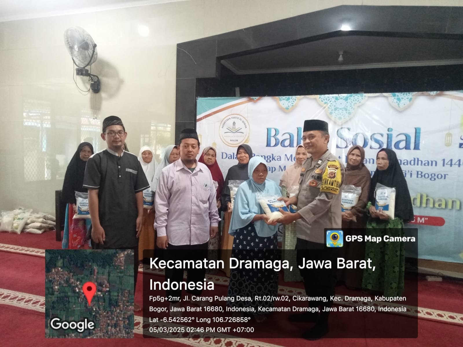 POLRES BOGOR,Poskota.Online-Bhabinkamtibmas Desa Cikarawang Polsek Dramaga Aiptu Dani Dayusman bersama Babinsa Koramil 2113 Ciomas Sertu Abdurohim,telah menghadiri Baksos yang dilaksanakan oleh PTQ Imam Syafi’i Kp. Carangpulang Ds. Cikarawang Kecamatan Dramaga Kabupaten Bogor. Kamis (6/3/2025)