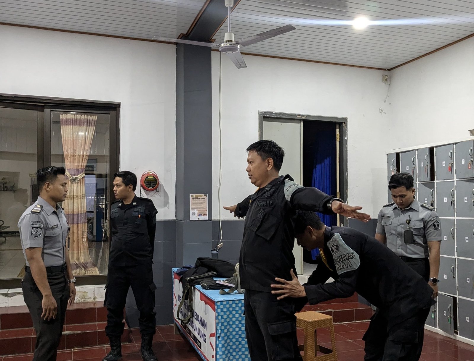 Brebes, Poskota.online – Dalam rangka memperkuat sistem keamanan dan ketertiban di lingkungan Lembaga Pemasyarakatan Kelas IIB Brebes, setiap anggota Regu Pengamanan (Rupam) wajib menjalani pemeriksaan badan dan barang bawaan sebelum memasuki area lapas. Selasa pagi (17/6) jajaran kesatuan pengamanan yaitu Anggota Rupam pagi dilakukan penggeledahan badan dan barang oleh Regu Pengamanan malam pada saat pergantian shift.