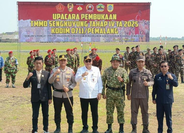 Program TNI Manunggal Membangun Desa (TMMD) Sengkuyung Tahap IV Tahun 2025 resmi dibuka oleh Wakil Bupati Pemalang, Nurkholis, S.H., M.Si., di Lapangan Desa Sukorejo, Kecamatan Ulujami, Kabupaten Pemalang, Selasa (8/10/2025). Kegiatan ini mengusung tema “Dengan Semangat TMMD Mewujudkan Pemerataan Pembangunan dan Ketahanan Nasional di Wilayah.”