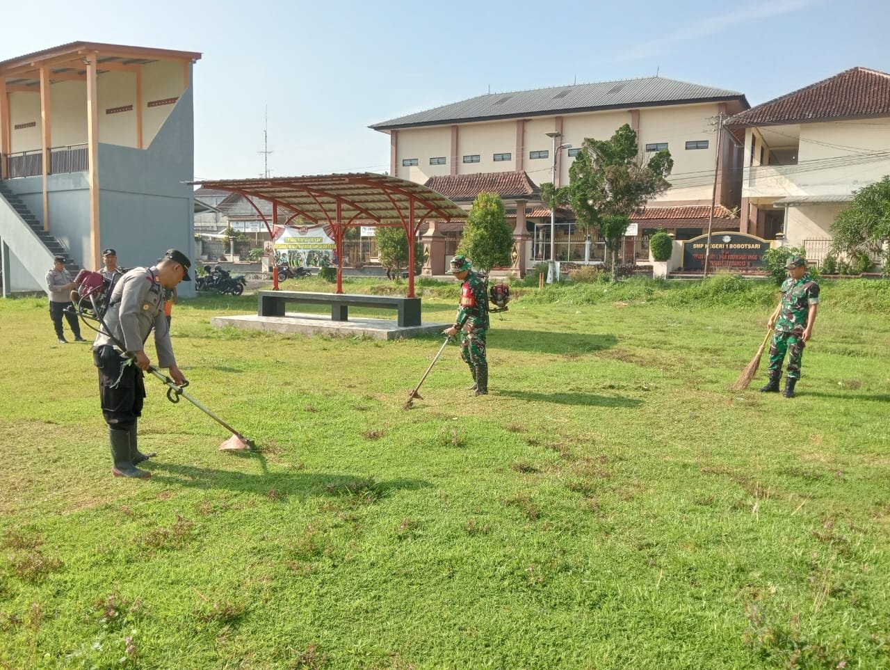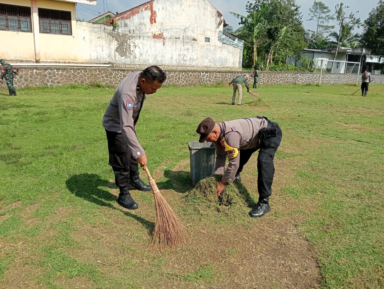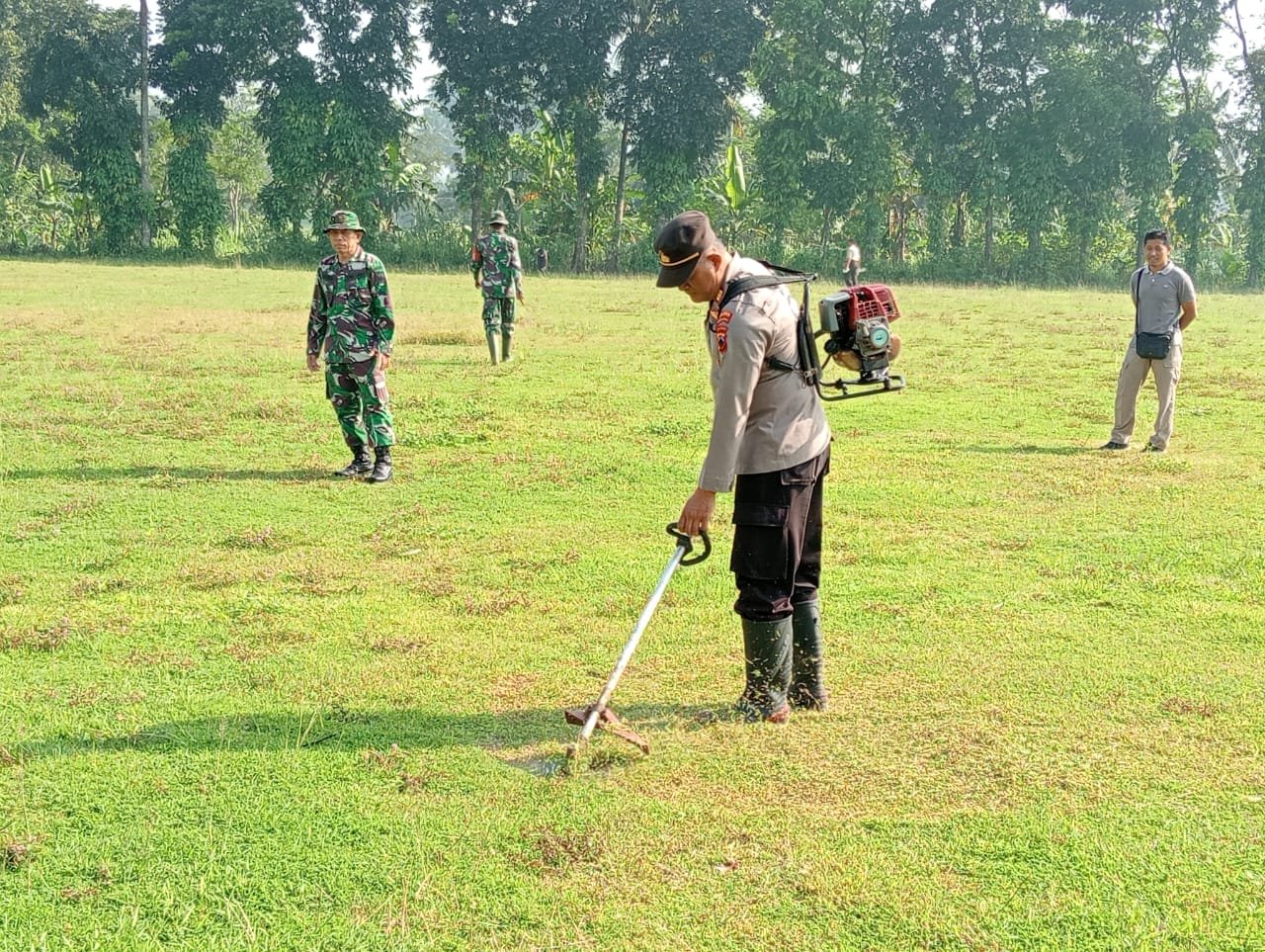 TNI-Polri di Bobotsari Bersihkan Lapangan untuk Salat Idul Fitri 1446 H