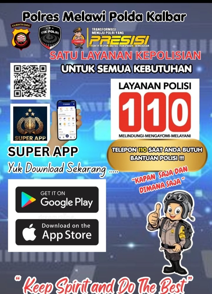 Polres Melawi Polda Kalbar Poskota Online– Kepolisian Negara Republik Indonesia (Polri) terus menunjukkan komitmennya dalam meningkatkan kualitas pelayanan publik melalui transformasi digital. Hal ini ditandai dengan peluncuran Super App Polri, sebuah inovasi layanan digital yang kini telah tersedia dan dapat diunduh masyarakat melalui App Store dan Google Play Store.
