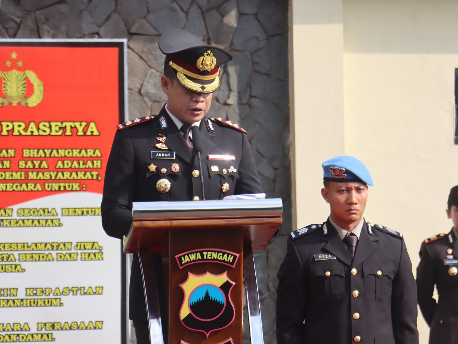 Bertindak selalu Inspektur Upacara Kapolres Purbalingga AKBP Achmad Akbar. Peserta upacara terdiri dari pejabat utama polres, para kapolsek, perwira dan bintara jajaran Polres Purbalingga.