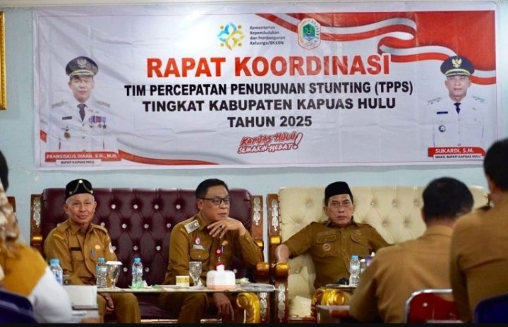 KAPUAS HULU Kalbar Poskota Online-Wakil Bupati Kapuas Hulu, Sukardi, S.M., selaku Ketua Tim Percepatan Penurunan Stunting (TPPS) Kabupaten Kapuas Hulu, secara resmi membuka Rapat Koordinasi TPPS Tahun 2025 yang dirangkai dengan kegiatan penginputan data pada website Aksi Bangda – Aksi Konvergensi Pencegahan dan Penurunan Stunting, bertempat di Aula Kantor BAPPEDA Kapuas Hulu, Selasa (7/10).