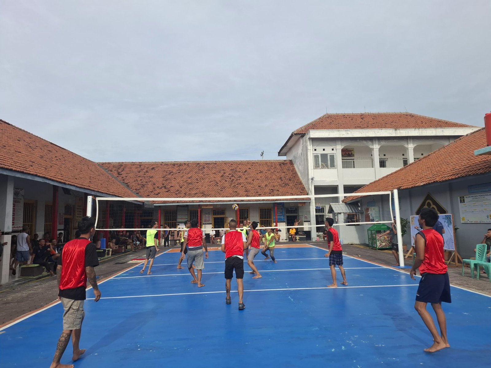 Brebes, Poskota.online – Dalam rangka proses pembinaan dan jaga keamanan ketertiban di Lembaga Pemasyarakatan Kelas IIB Brebes Warga Binaan Pemasyarakatan (WBP) Laksanakan lomba olahraga Bola Voli di Lapangan Blok Hunian Lapas Brebes pada Sabtu Pagi (25/01). Cuaca yang tidak begitu panas ikut menambah semangat tiap tiap WBP untuk bertanding.